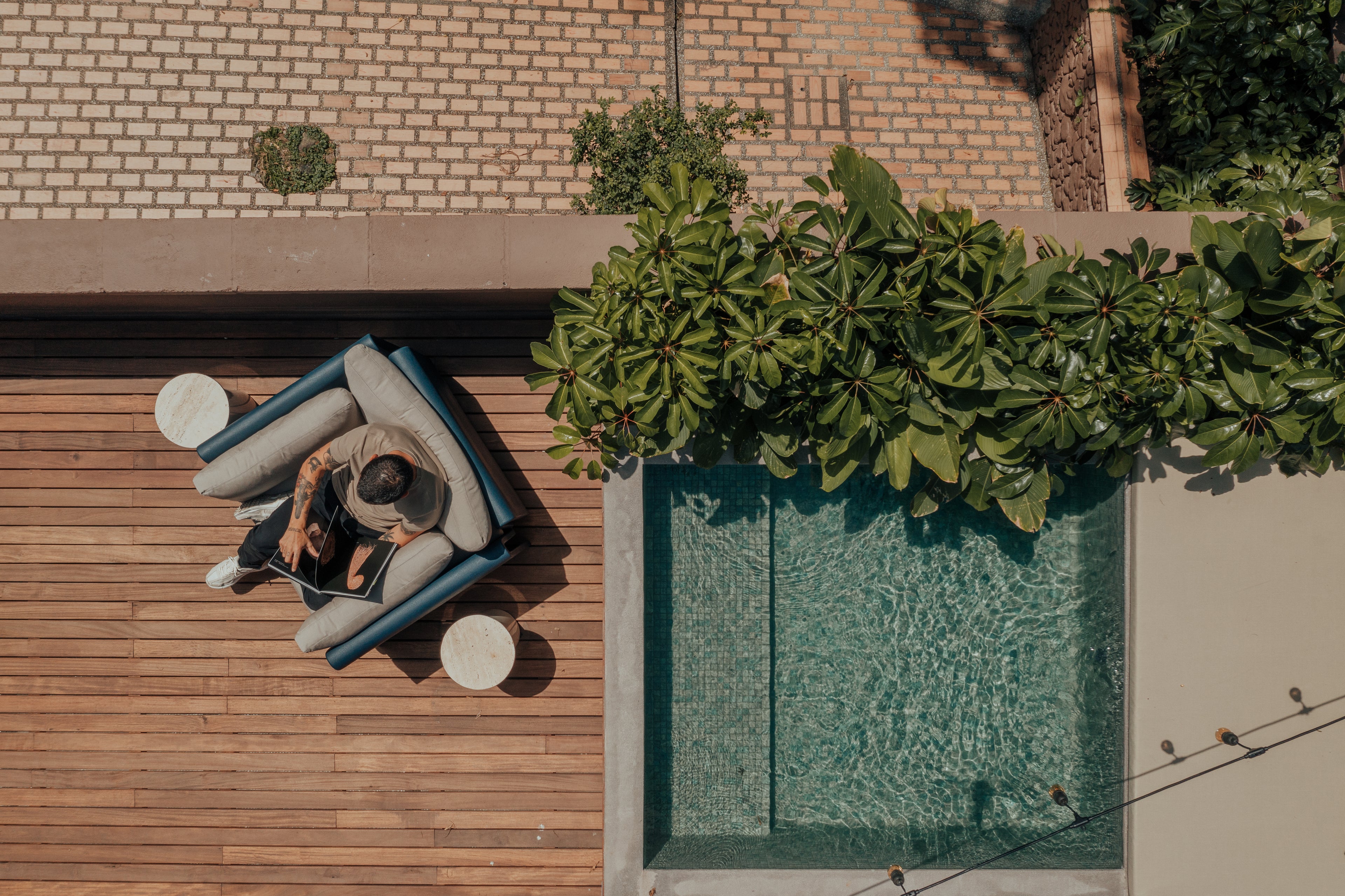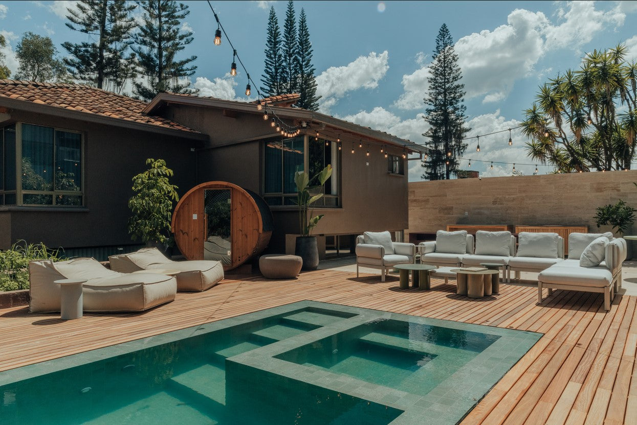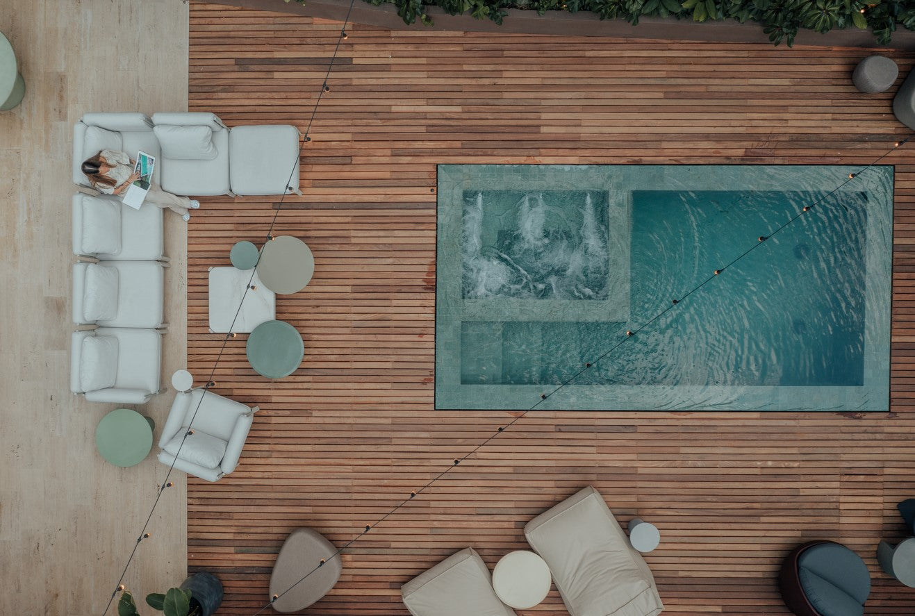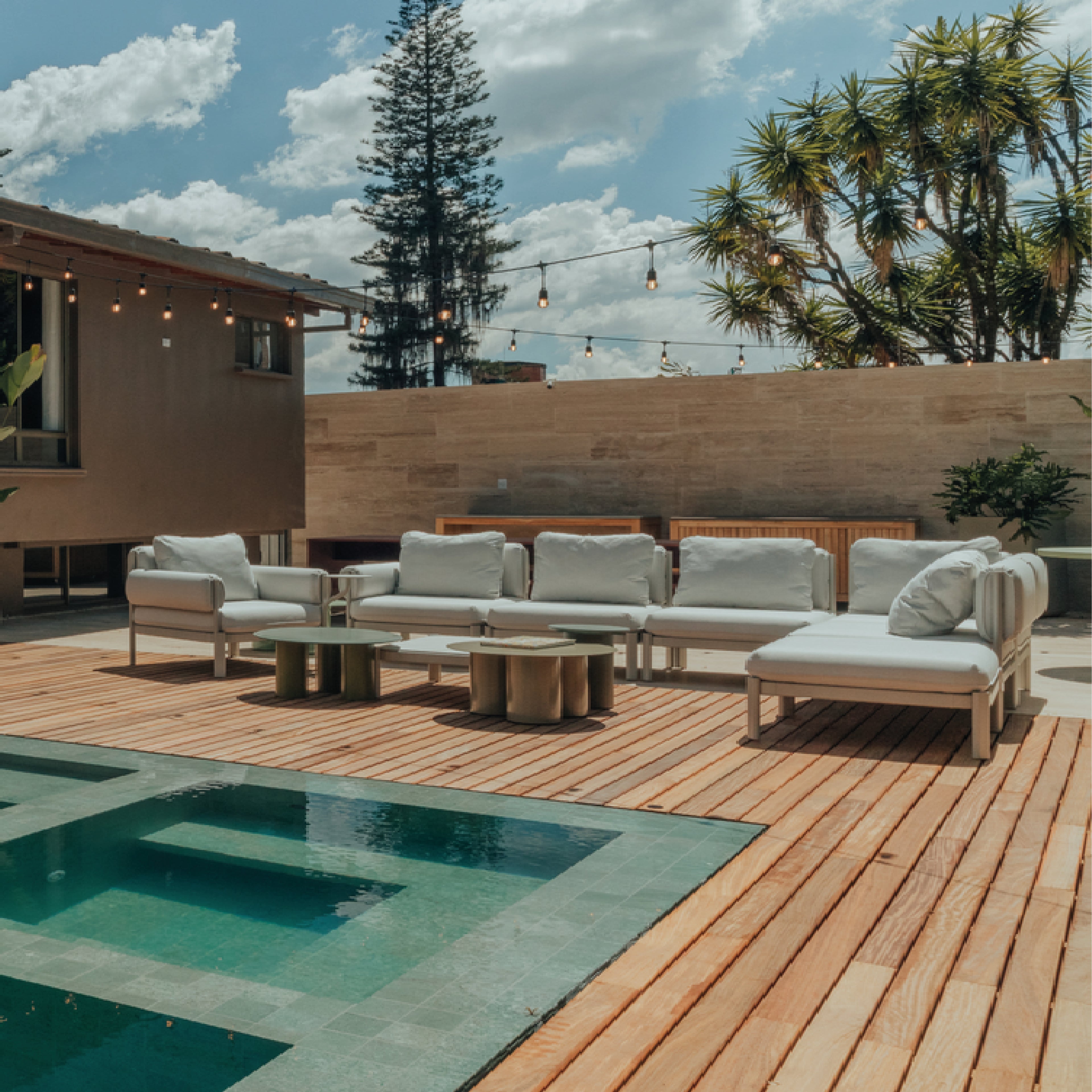 Un espacio que invita al descanso y la conexión con la naturaleza. Este elegante deck de madera enmarca con calidez la piscina, creando un equilibrio perfecto entre diseño y funcionalidad.